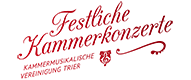 Der Städtische Musikverein Trier 1846 e.V. ist seit 164 Jahren einer der bedeutendsten Kulturträger der Stadt Trier. Seit nun 51 Jahren veranstaltet die "Kammermusikalische Vereinigung" in jedem Winter 5 Konzerte, im Herbst beginnend und vor Ostern endend, von der Vorklassik (aber auch gelegentlich weiter vorgreifend) bis in unsere Tage. Wir bringen "Kammermusik" vom Duo (z.B. Violine und Klavier) bis zum Sextett, selten auch einmal bis Oktett (was den akustischen Rahmen überfordern könnte). Die Thematik verfolgt auf lange Sicht einen "roten Faden": Im Mittelpunkt steht die musikalische Entwicklung insbesondere des Streichquartetts und des Klaviertrios seit Haydn, aber wir führen auch bis in unsere Tage (z.B. Rihm oder Schnitke) und haben mehrfach Werke uraufgeführt. Die Kammermusikalische Vereinigung in der 162-jährigen Tradition des Städtischen Musikvereins ist treu ihrem Gründungsauftrag eine Bürgerinitiative, die noch nie Zuschüsse gleich welcher öffentlichen Hand in Anspruch genommen hat.